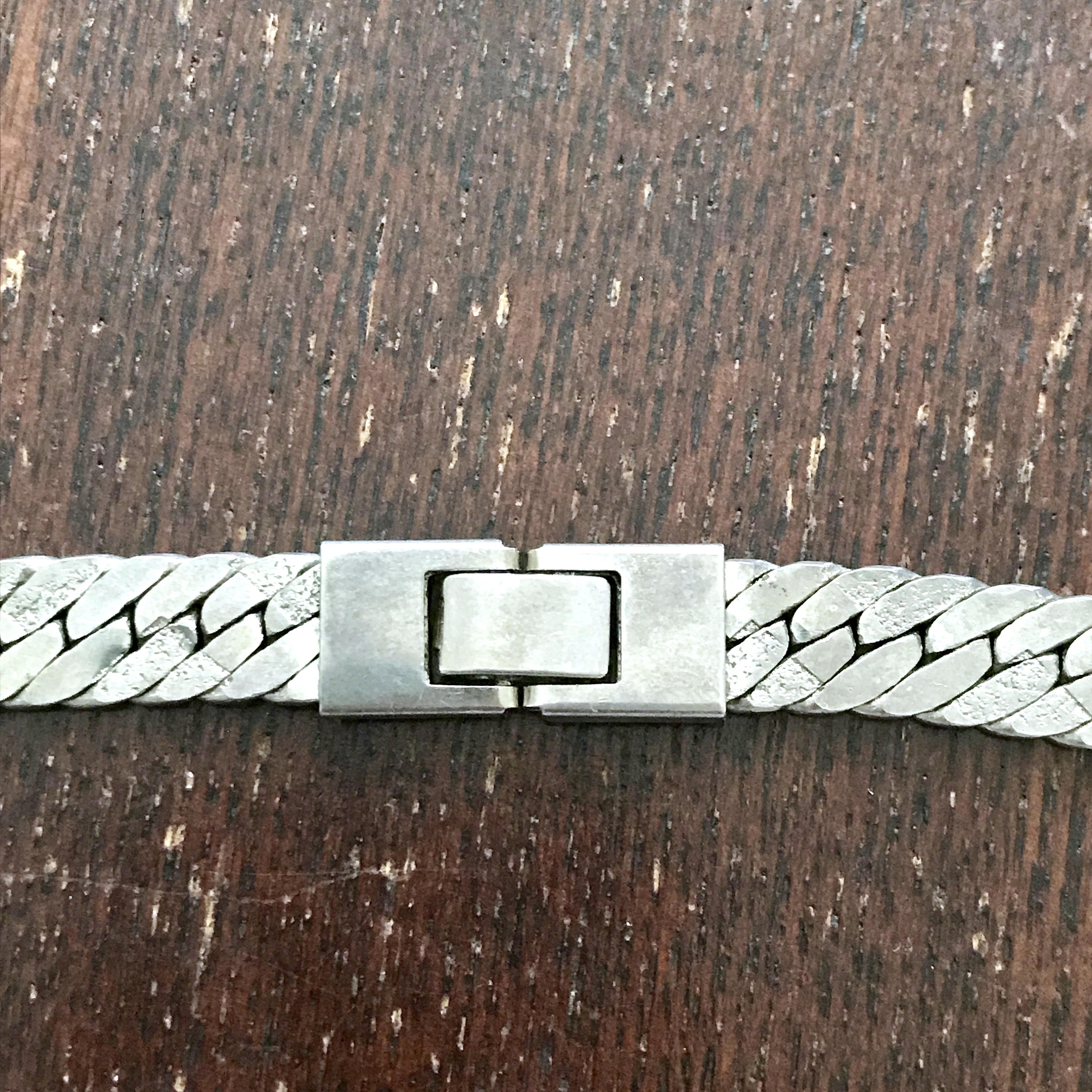 This is a Stunning, Solid Sterling Silver, Wide Flat Chain Necklace! This Chain measures 20" Inches Long, and has large smooth and textured Links. This big 80s chain is Modern, Minimalist, and Heavy! Weighing at 53 grams! It is textured on both sides, and is just beautiful!