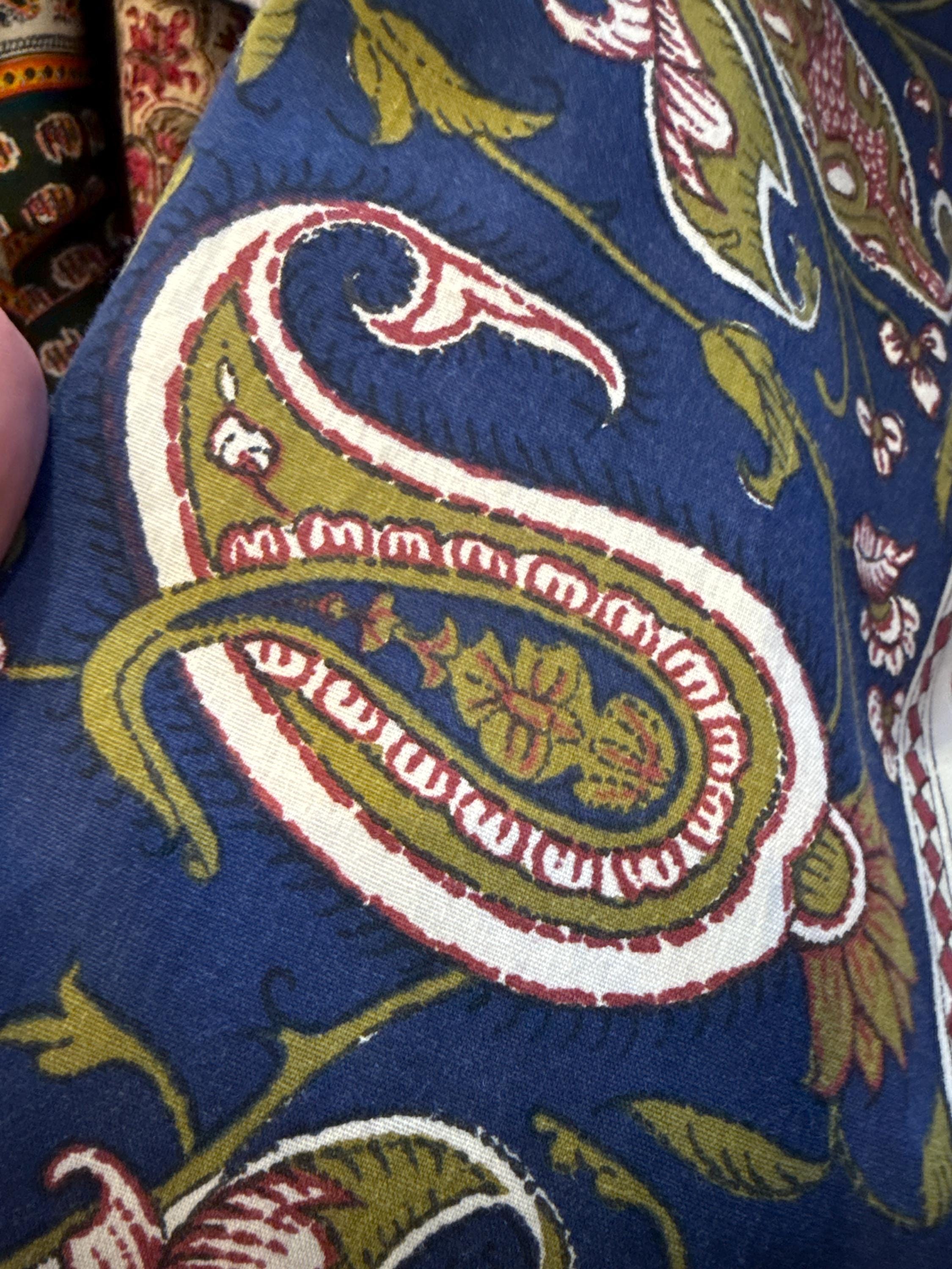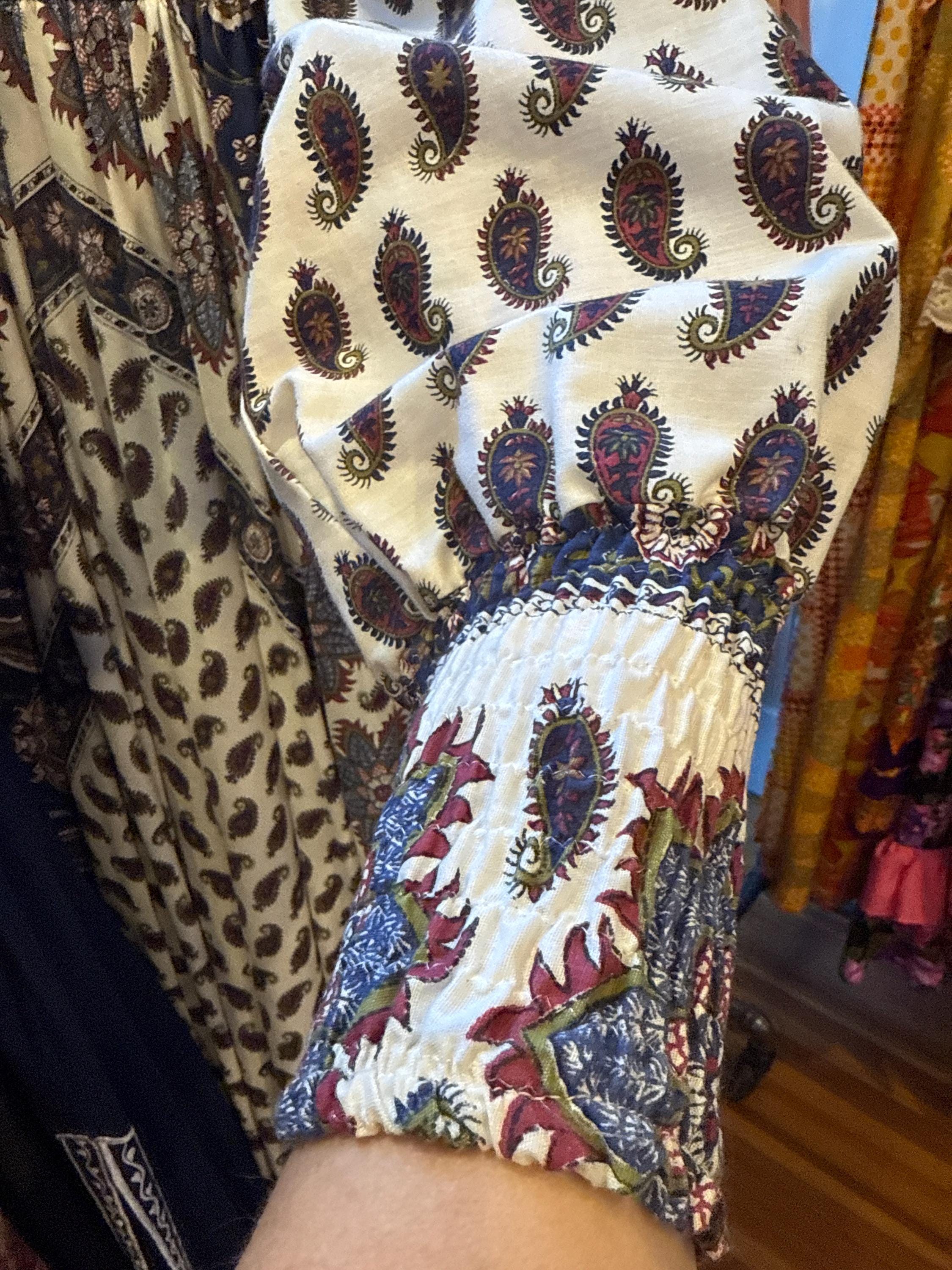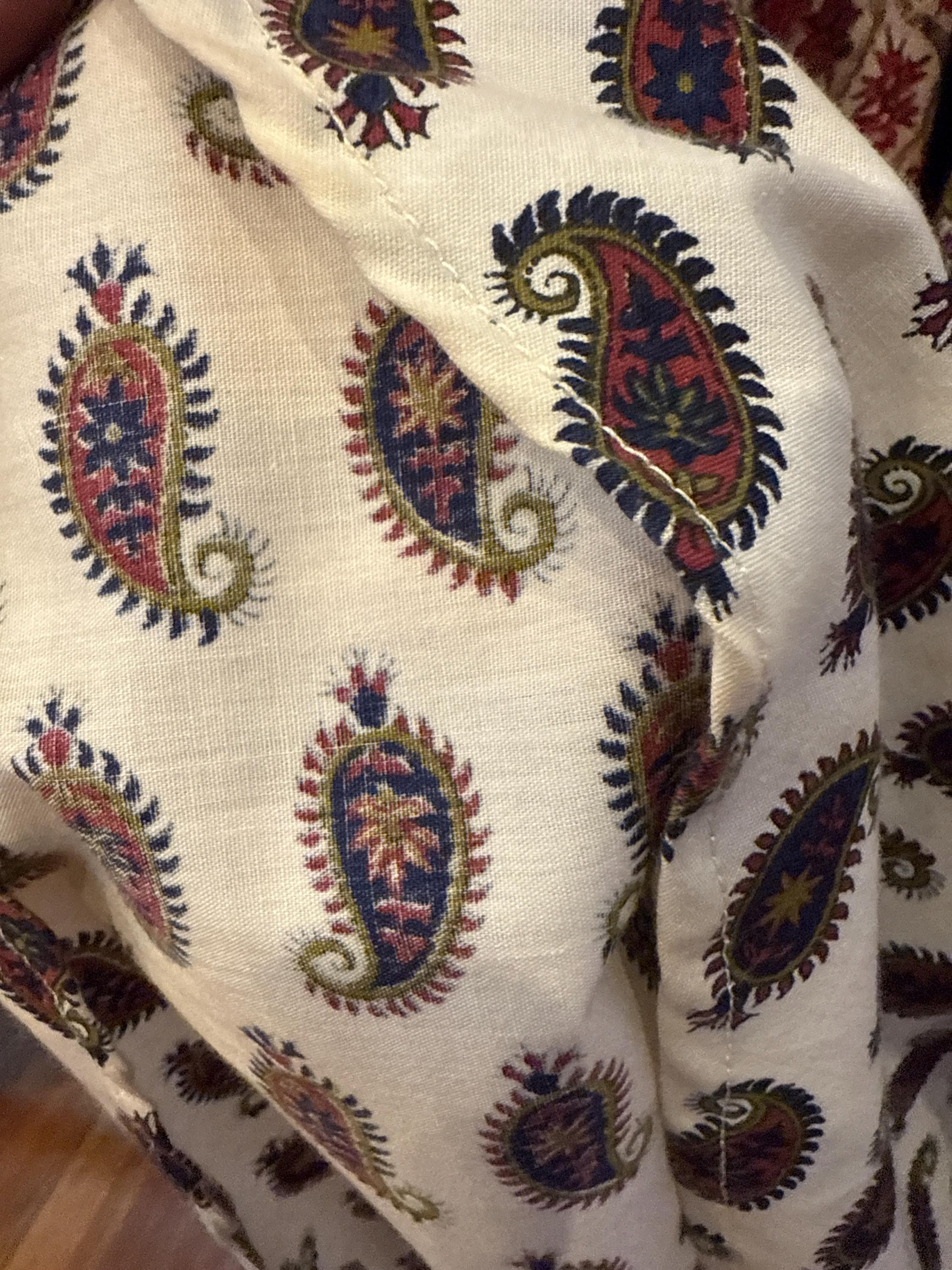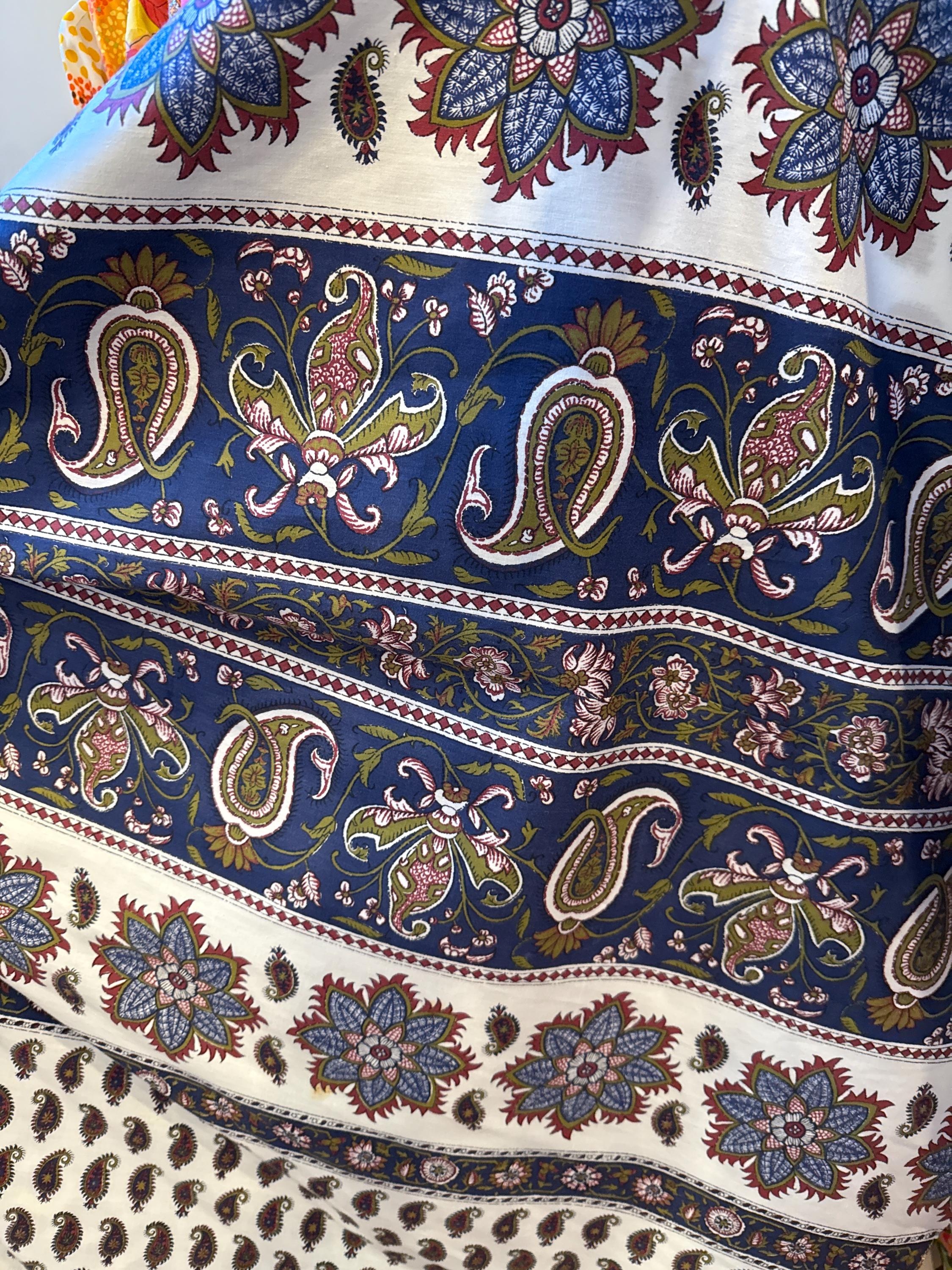The paisley pattern is just beautiful in blues and reds and other scrolling work. This hippie true vintage 70s maxi dress is fun to twirl in!