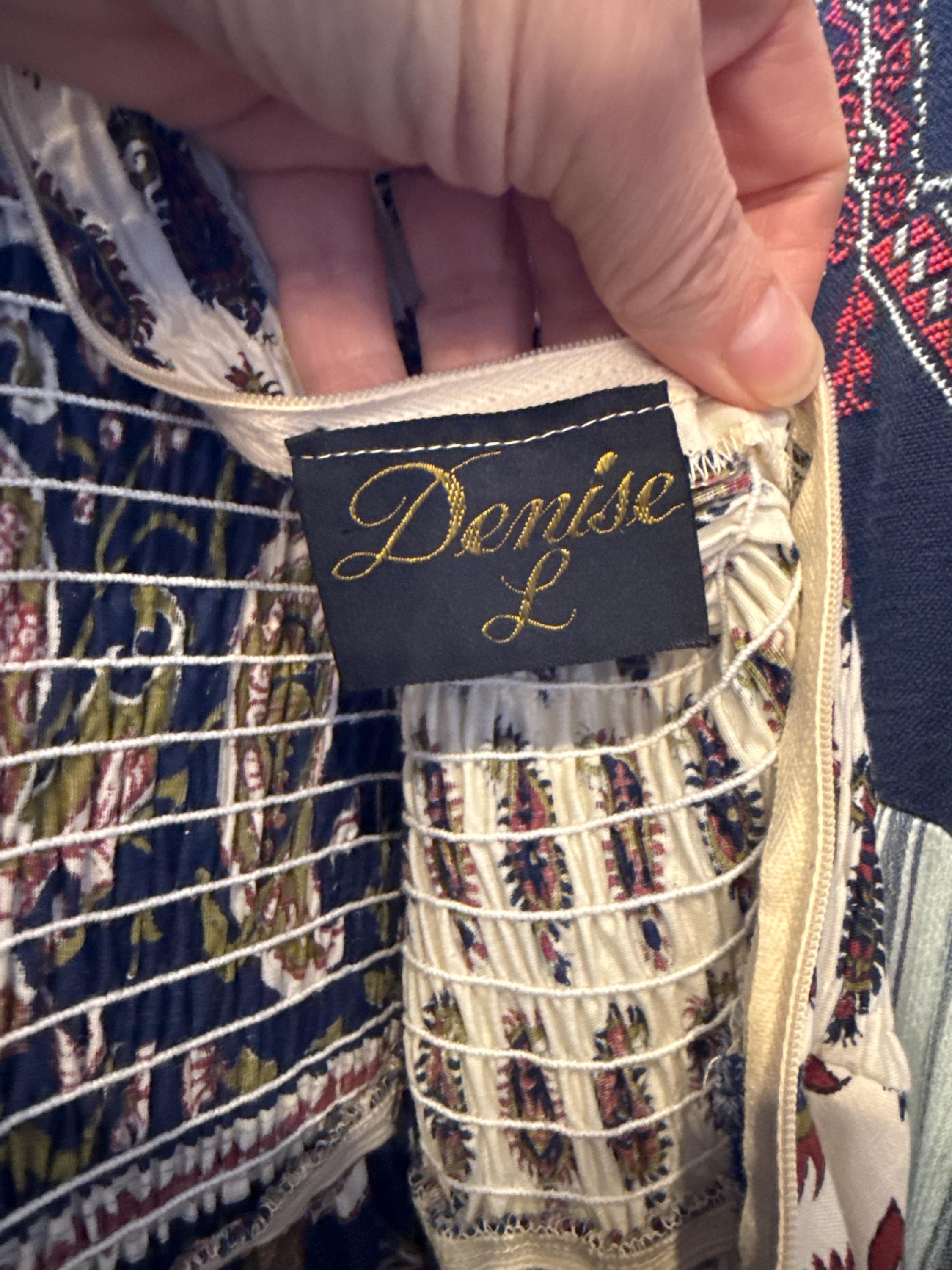 This absolutely stunning, vintage 70s long sleeve maxi dress was made in the 1970s by designer "Denise L" . This stunning cotton dress is floor length with smocking and long puff sleeves. The dress has a full circle skirt and lots of drama! Perfect with tall boots and a leather belt in the fall or sandals in the summer.