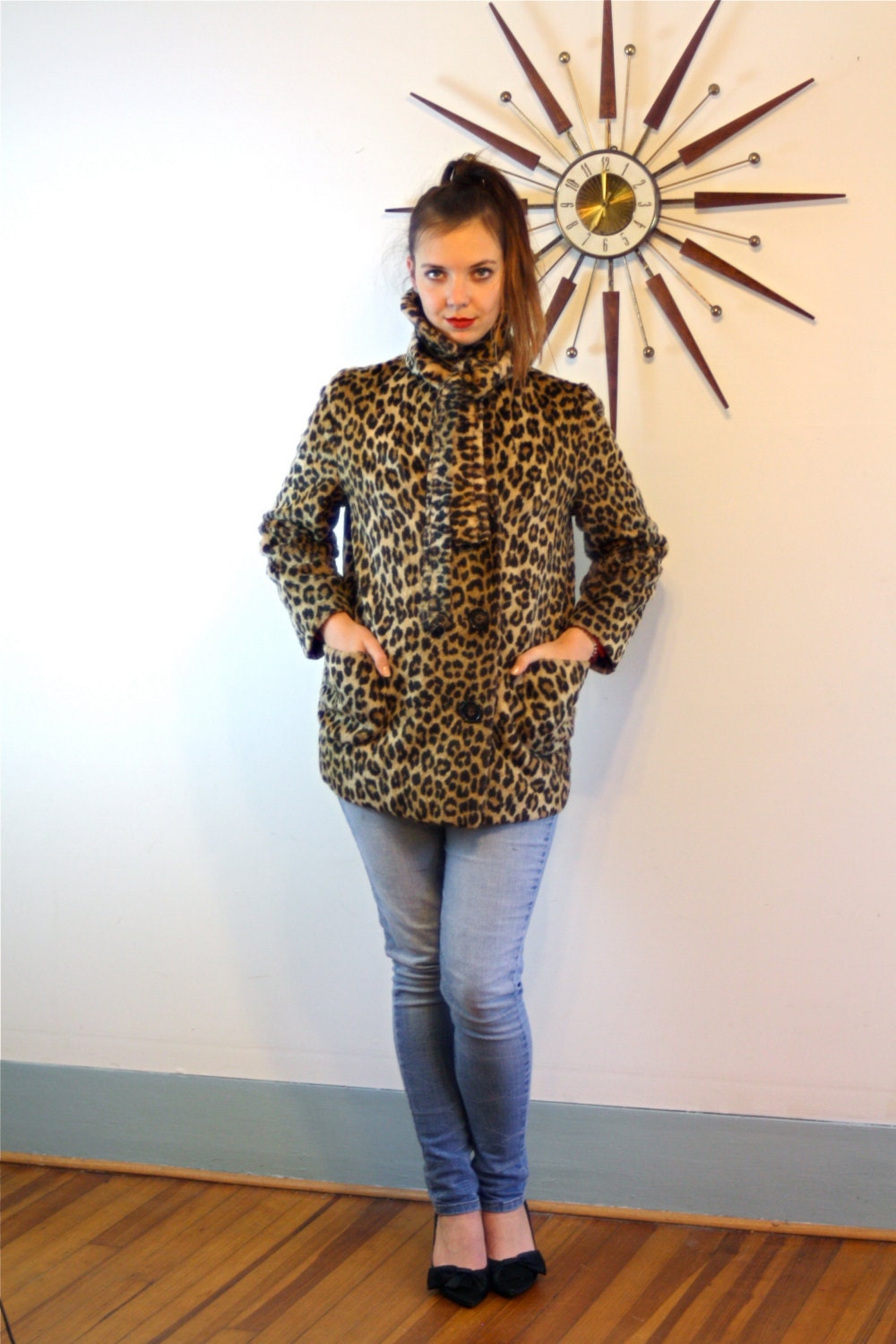 Leopard Print jacket, Vintage 1960s coat, Faux Fur jacket, Spotted Fur Jacket, Cheetah Print Coat, 60s MAD MEN, Animal Print Jacket, Leopard short Coat, Leopard Jacket, fake fur, vegan fur
