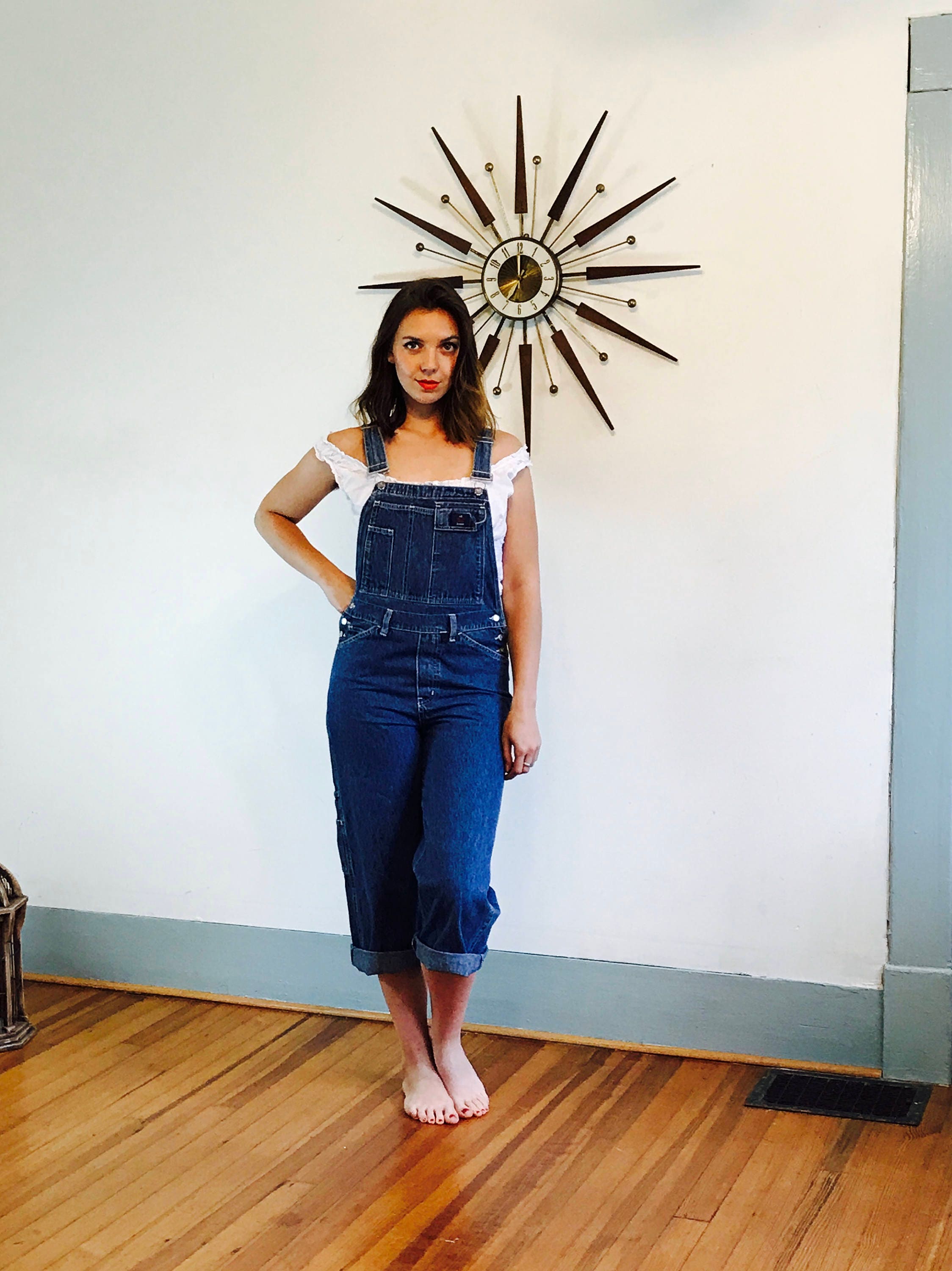 The cutest vintage 90s Calvin Klein denim overalls! Classic medium dark blue jean wash with metal rivets, adjustable shoulder straps and buttons on the hips! These Women's long bib front dungarees are summer festival ready! These designer coveralls have a great cut and so many pockets!